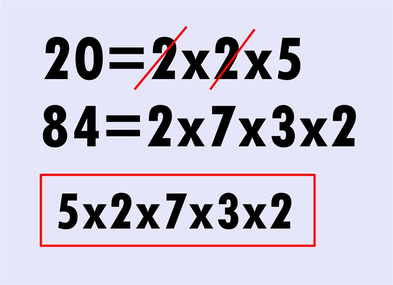 1. Angka 20 dan 84 adalah angka yang lebih dari 10, kamu bisa menggunakan cara ini untuk menemukan KPK.