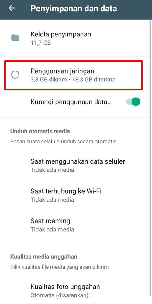 - Klik "Penggunaan jaringan", selanjutnya akan terlihat berapa penggunaan data terpakai.